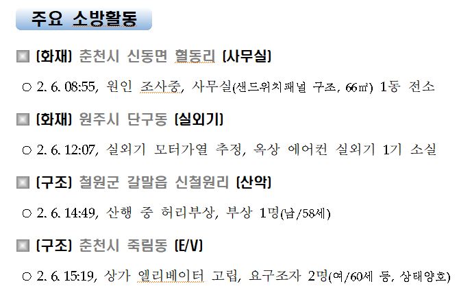 강원도 소방활동 주간상황(2. 6. 토) 17:00
