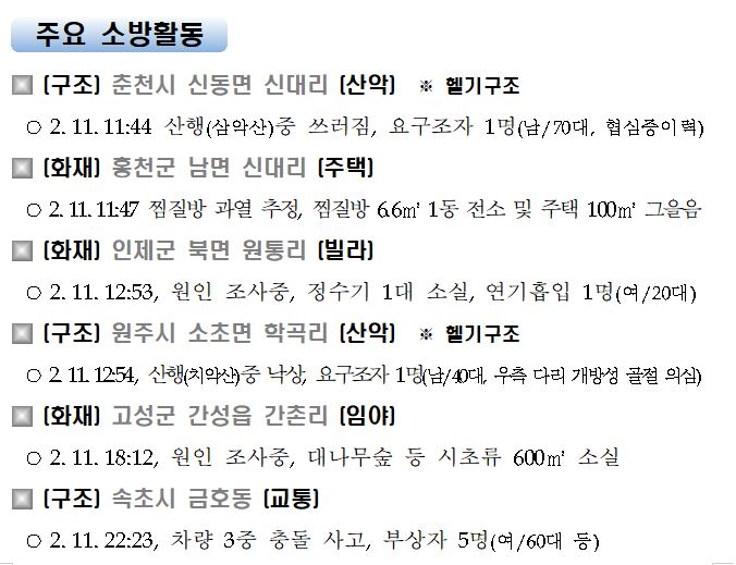 강원도 소방활동 주간상황(2. 11. 목) 17:00
