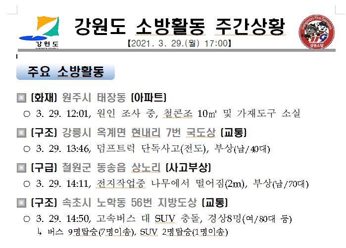 강원도 소방활동 주간상황(3. 29. 월) 17:00