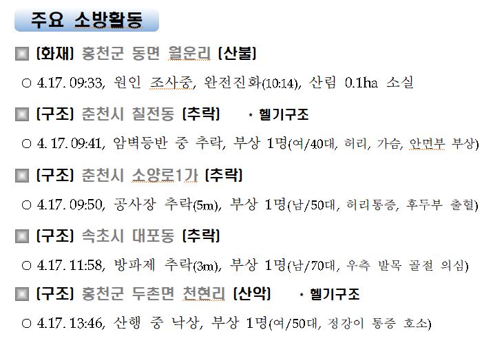 강원도 소방활동 일일상황 (4. 17. 토) 17:00