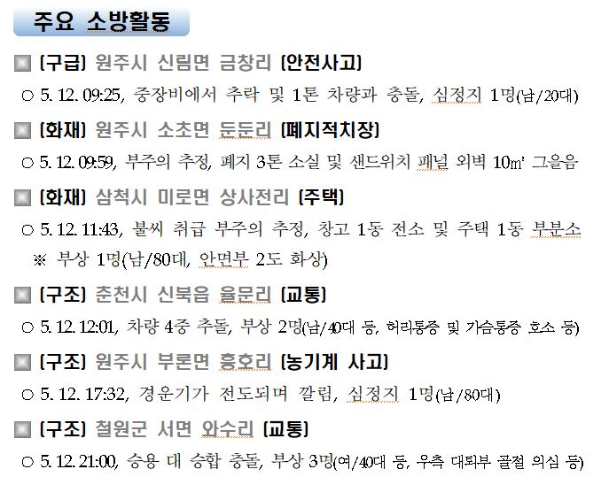 강원도 소방활동 일일상황(5. 13. 목) 06:00