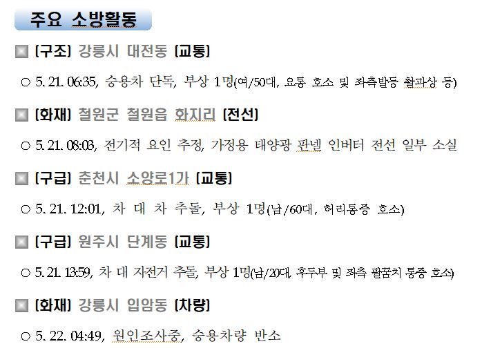 강원도 소방활동 일일상황(5. 22. 토) 06:00