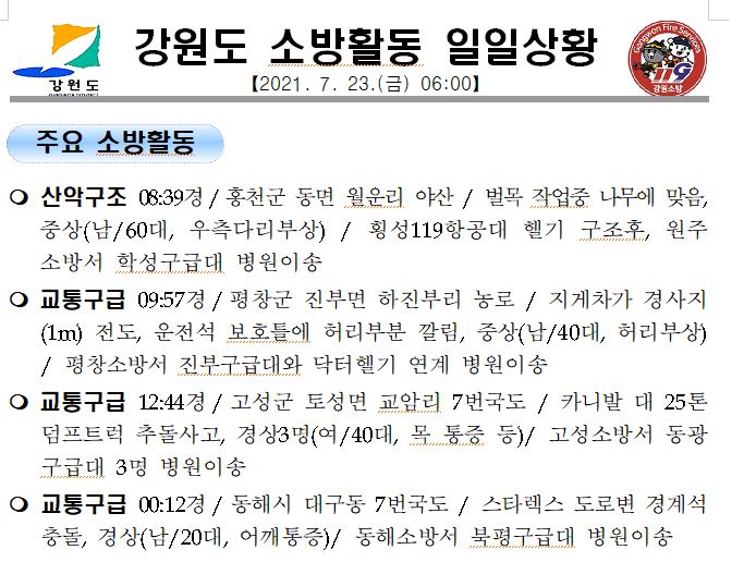 강원도 소방활동 일일상황 (7. 23. 금) 06:00