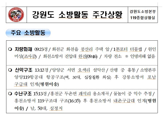 강원도 소방활동 주간상황 (7. 24. 토) 17:00