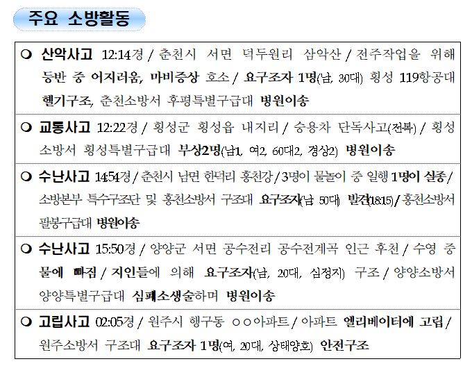 강원도 소방활동 일일상황 (8. 6. 금) 06:00