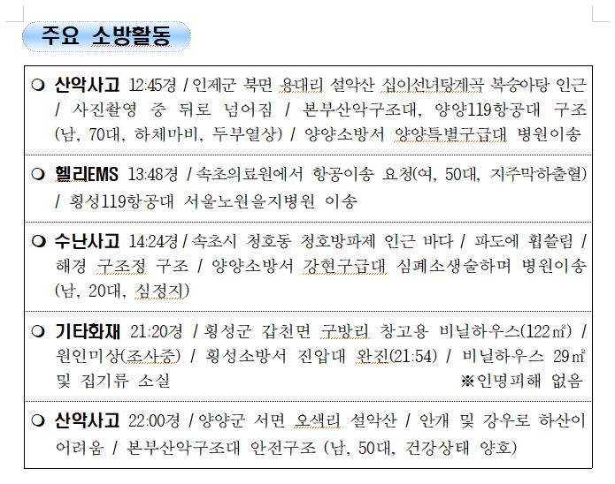강원도 소방활동 일일상황 (8. 12. 목) 06:00