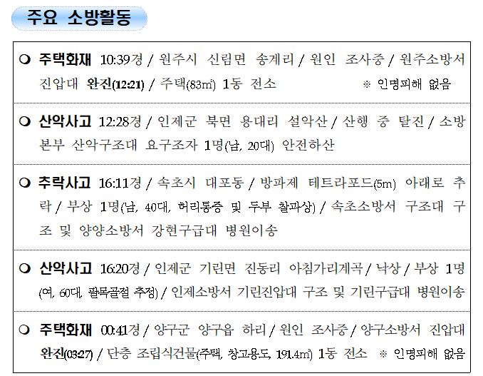 강원도 소방활동 일일상황 (8. 24. 화) 06:00- 양구군 화재사진 추가
