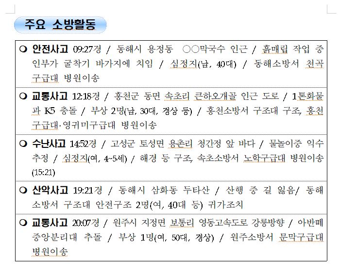 강원도 소방활동 일일상황 (9. 6. 월) 06:00