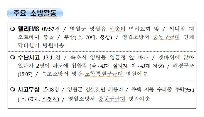 강원도 소방활동 주간상황 (9. 16. 목) 17:00