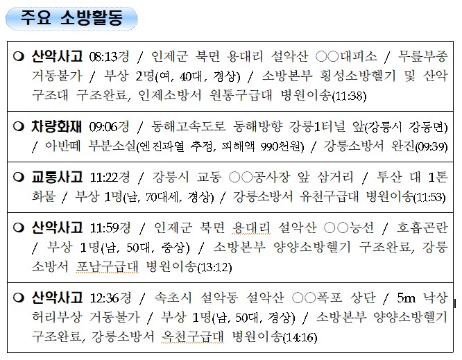 강원도 소방활동 주간상황 (9. 26. 일) 17:00