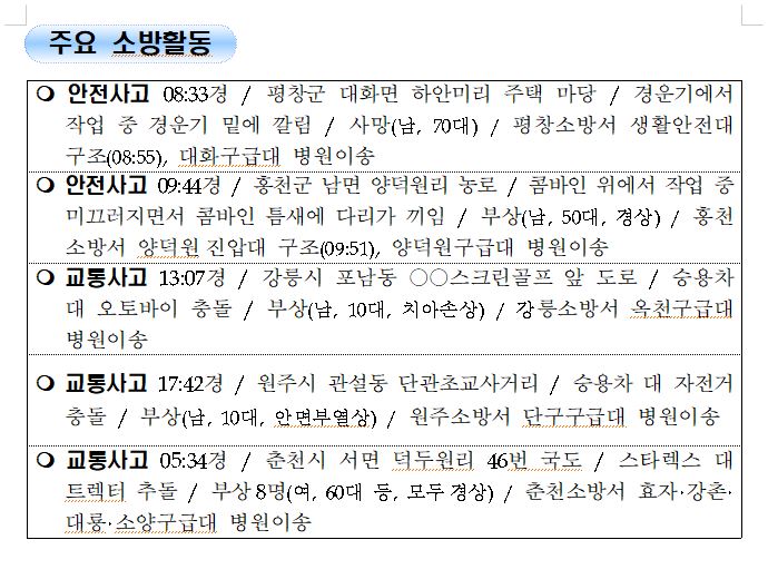 강원도 소방활동 일일상황 (10. 14. 목) 06:00