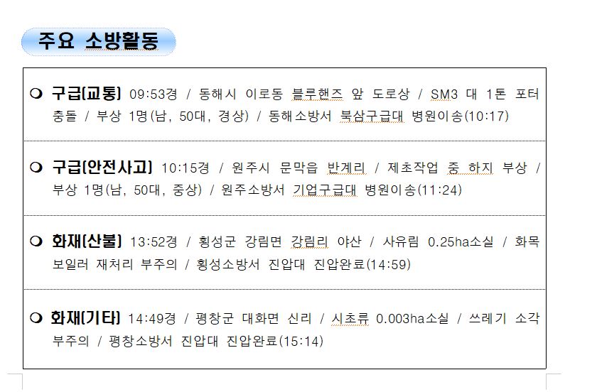 강원도 소방활동 주간상황 (11. 29. 월) 17:00