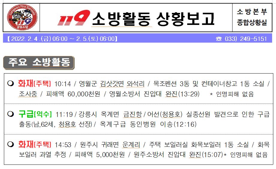 119 소방활동 상황 보고(2. 7. 월) 17:00