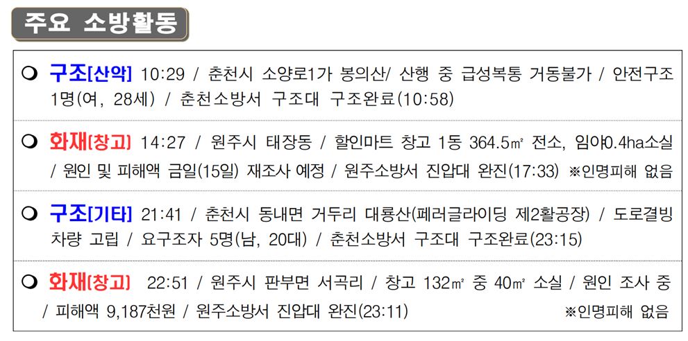 119 소방활동 상황보고(2. 15. 화) 17:00