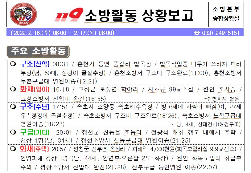 119 소방활동 상황보고(2. 17. 목) 06:00