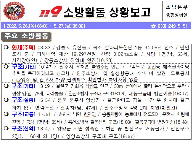 119 소방활동 상황보고(5. 27. 금) 06:00