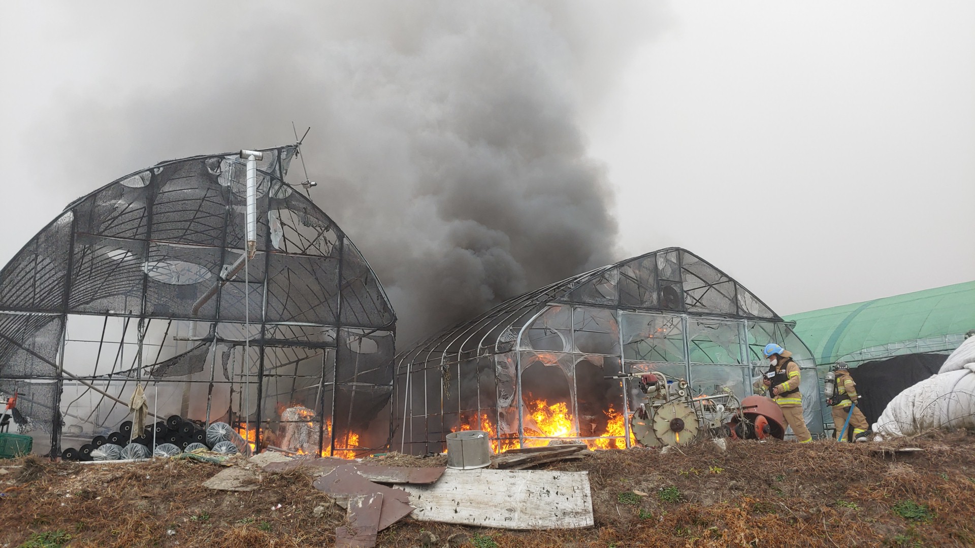 08:32, 화목보일러 과열 추정, 비닐하우스 총 792㎡소실(1동 전소 / 2동 반소), 피해액 약 30,000천원