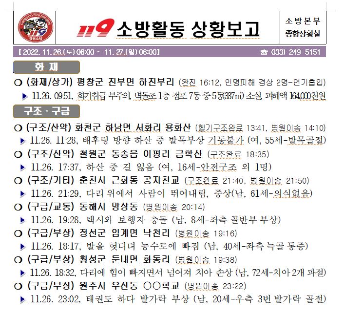 119 소방활동 상황보고(11. 27. 일) 06:00