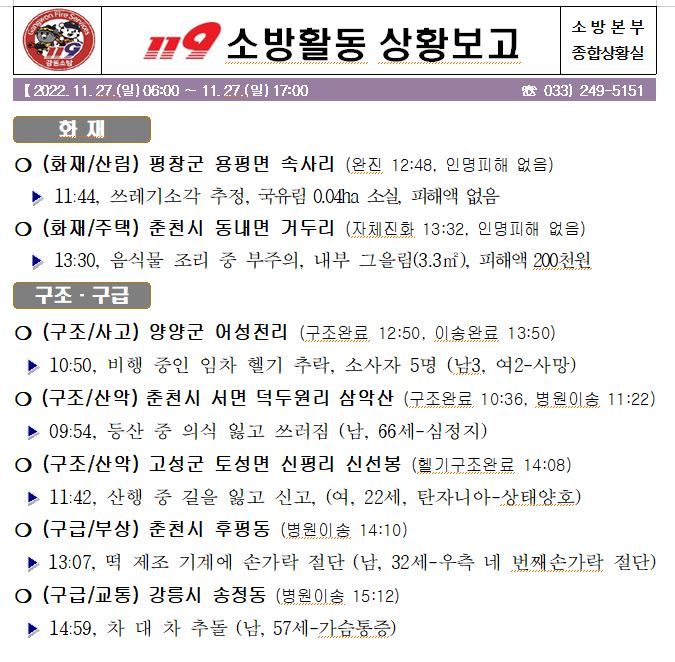 119 소방활동 상황보고(11. 27. 일) 17:00