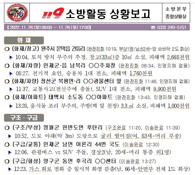 119 소방활동 상황보고(11. 29. 화) 06:00