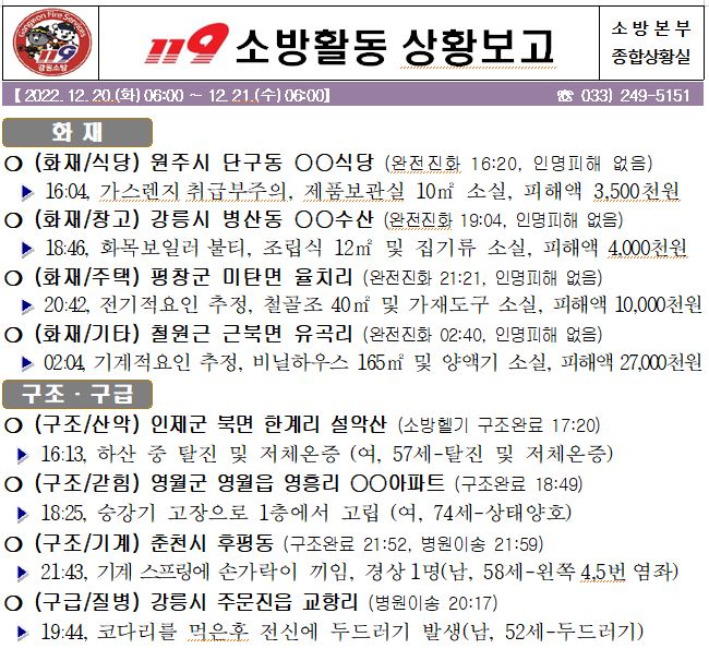 119 소방활동 상황보고(12. 21. 수) 06:00