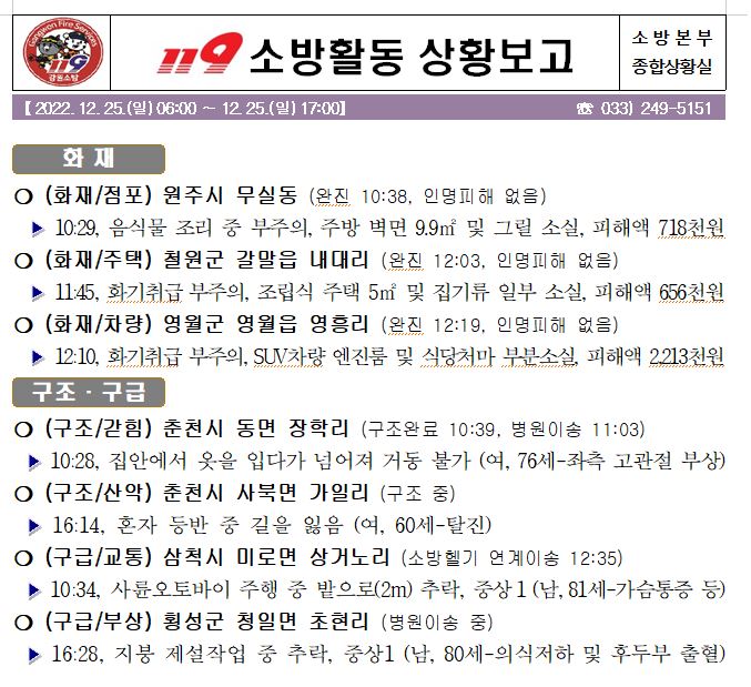 119 소방활동 상황보고(12. 25. 일) 17:00