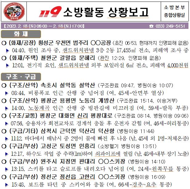119 소방활동 상황보고(2. 17. 금) 17:00