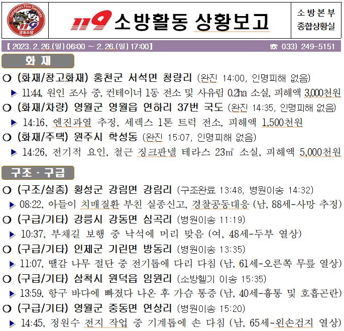 119 소방활동 상황보고(2. 26. 일) 17:00