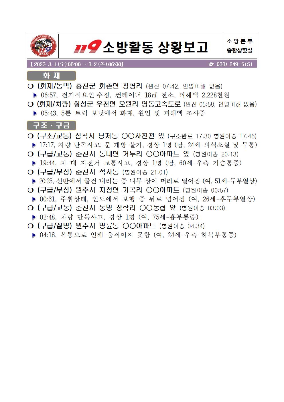 119 소방활동 상황보고(3. 2. 목) 06:00