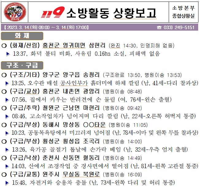 119 소방활동 상황보고(3. 14. 화) 17:00