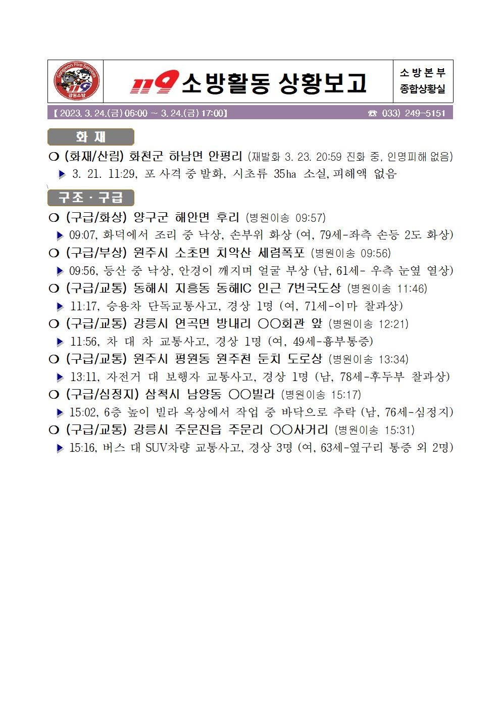 119 소방활동 상황보고(3. 24. 금) 17:00