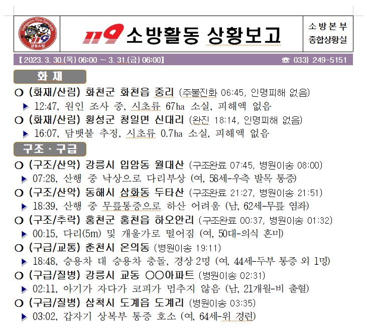 119 소방활동 상황보고(3. 31. 금) 06:00
