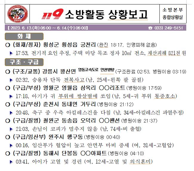 119 소방활동 일일상황보고(6.14. 수) 06:00