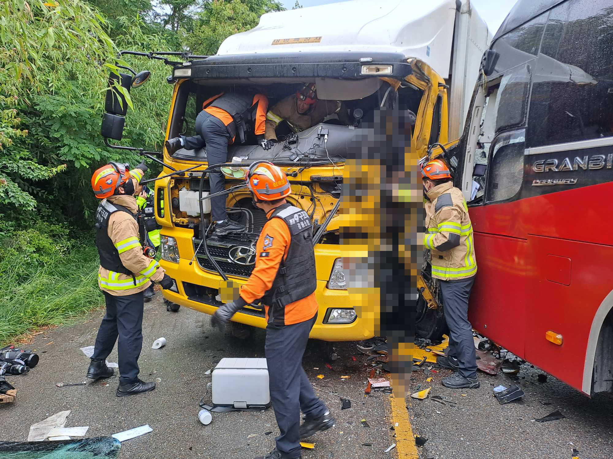 강릉 관광버스 대 화물차 충돌 교통사고