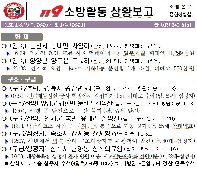 119 소방활동 일일상황보고(8.3.목) 06:00