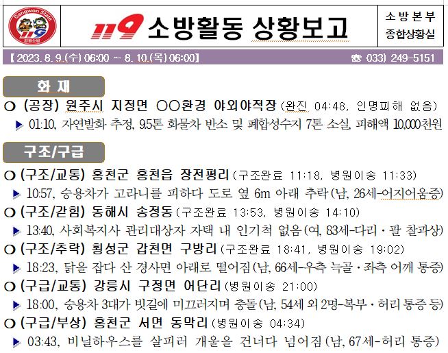 119 소방활동 상황보고(8. 10. 목) 06:00