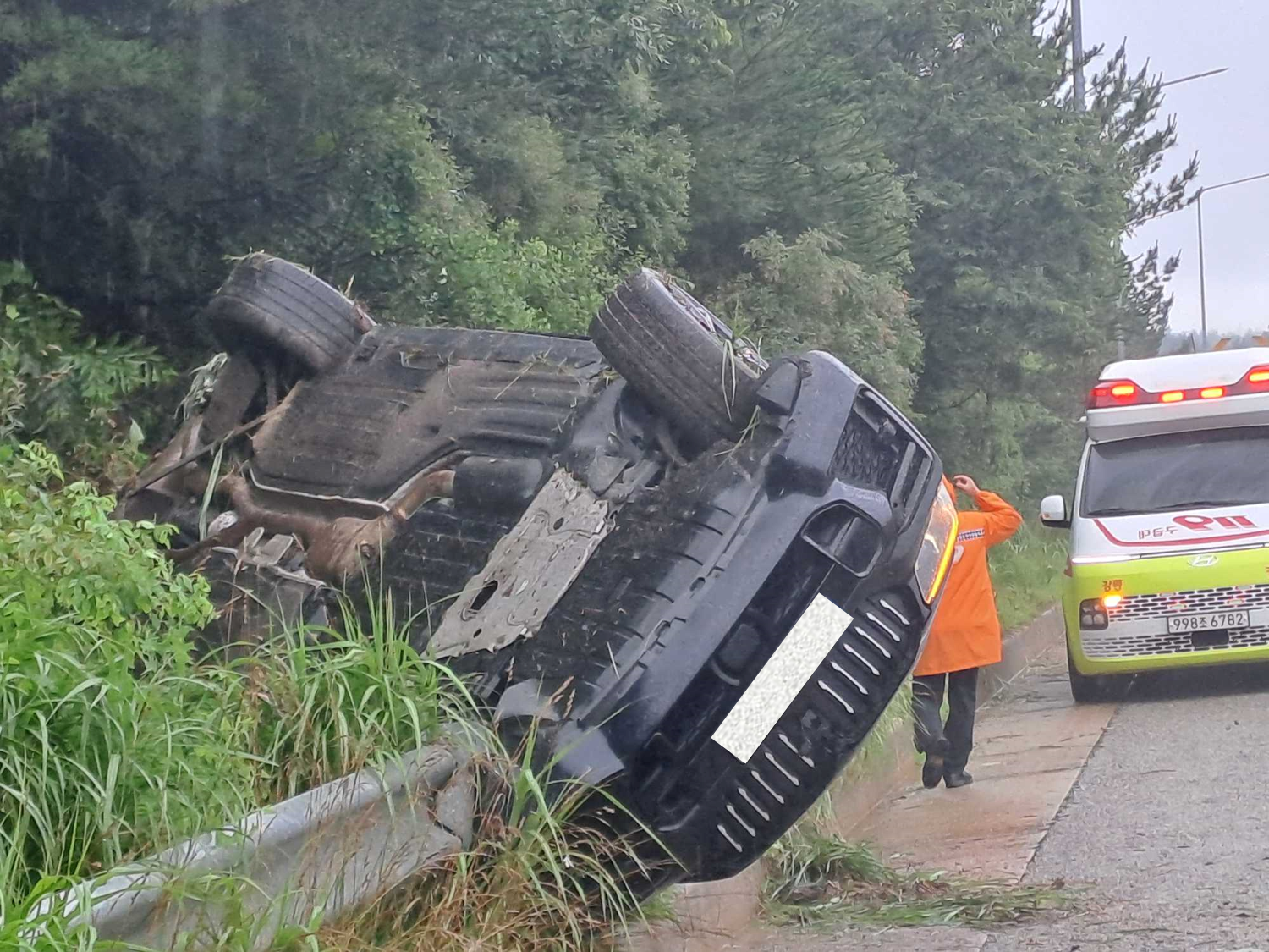 12:21~13:23 아우디 차량 단독 전복, 경상3(여,52세, 여,39세 여,43세) 강릉고려