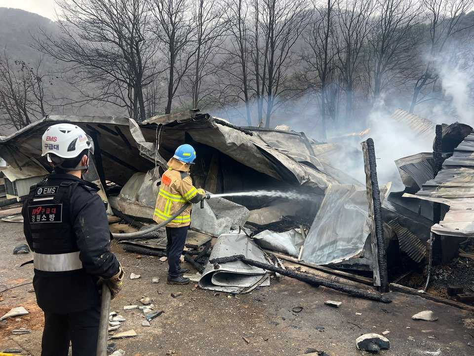 철원군 동송읍 비닐하우스 화재 및 정선 정선읍 주택 및 창고 화재 관련 사진