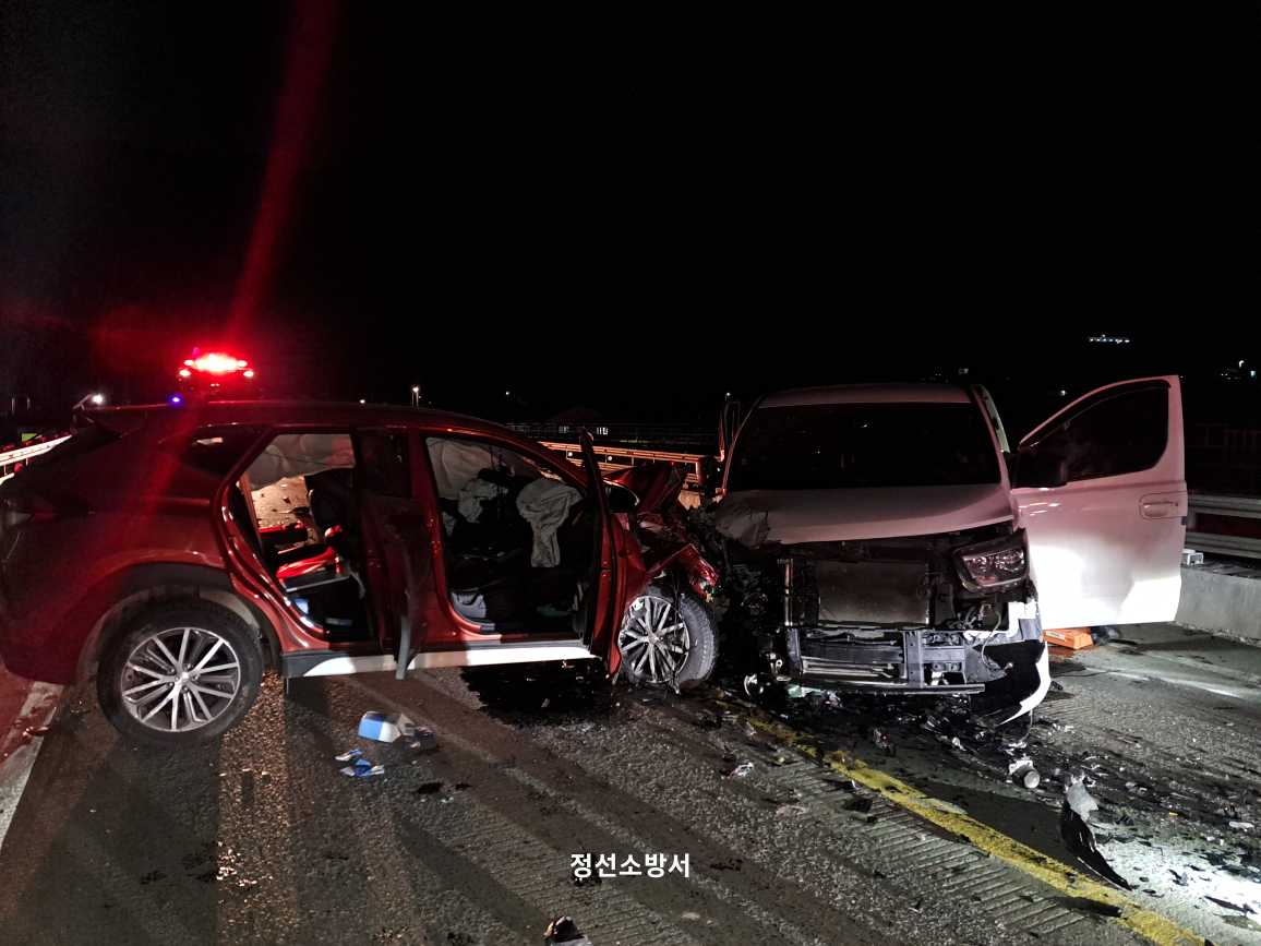 → 투싼 대 스타렉스 차량 충돌사고, 심정지 1명(투싼 운전자 최○○ 여, 54세/정선), 경상 2명(스타렉스 차량 여, 47세, 운전자/정선, 남 53세,동승자/강릉)