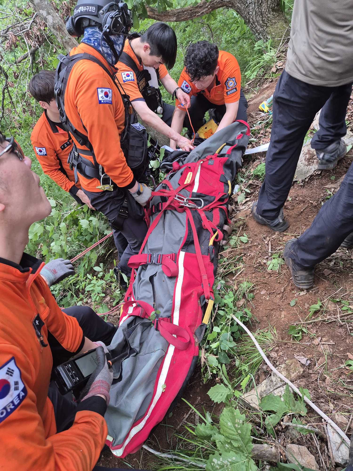 12:33~15:41, 임산물 채취 중 추락(5m)추정, 강원001 호이스트 구조 및 이송, 심정지(남, 64세/대전), 원주기독