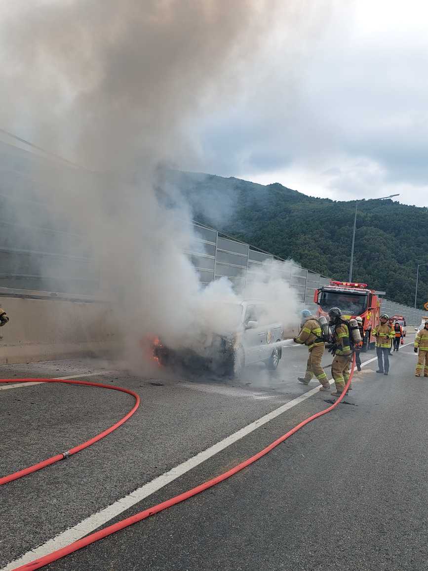 1318 강릉 보광리 영동고속도로(강릉방향) 차량화재 소방활동 사진1.jpg