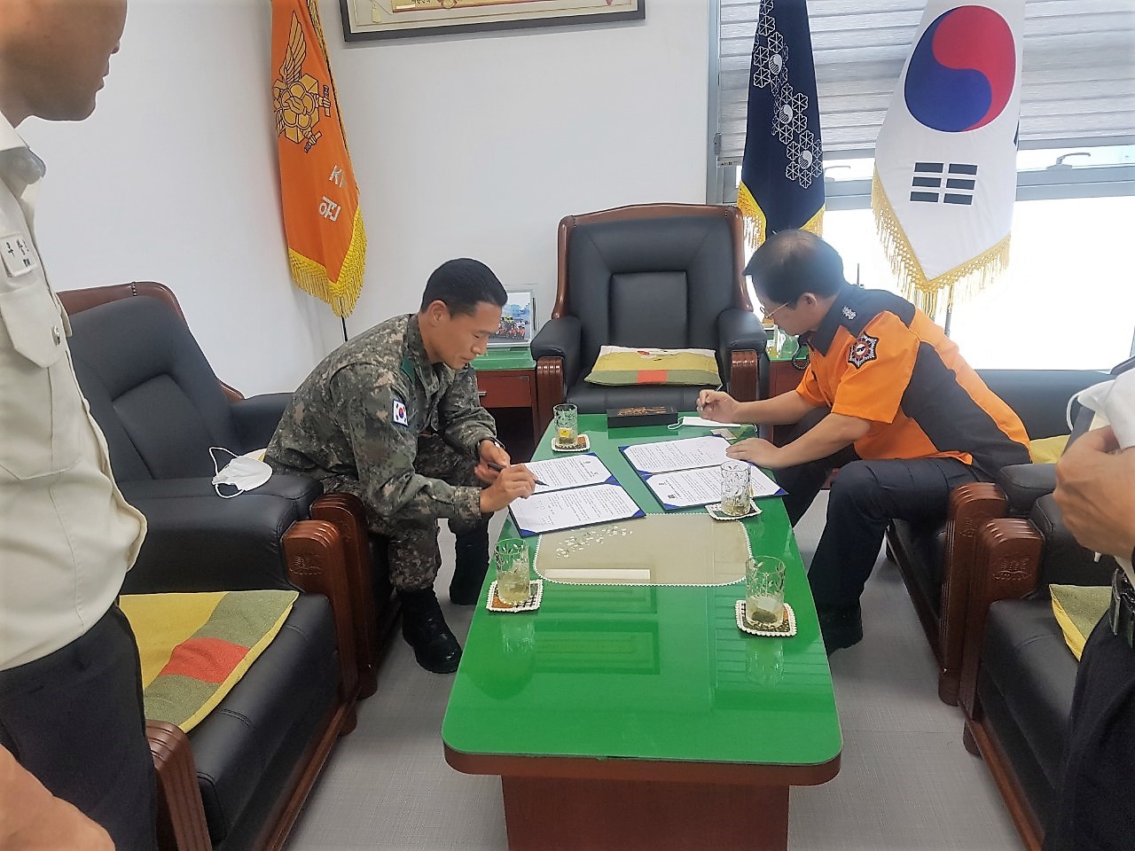 이날 원주소방서에서 진행된 협약식에는 이기중 서장, 8375부대 류윤석 대대장 등 관계자 6명이 참석한 가운데 양 기관은 통합방위작전의 주체로서 상호 협력하고, 시민 안전과 지역안보에 위혐이 되는 재난·테러·안보상황에 적극 협력해나가기로 했습니다.