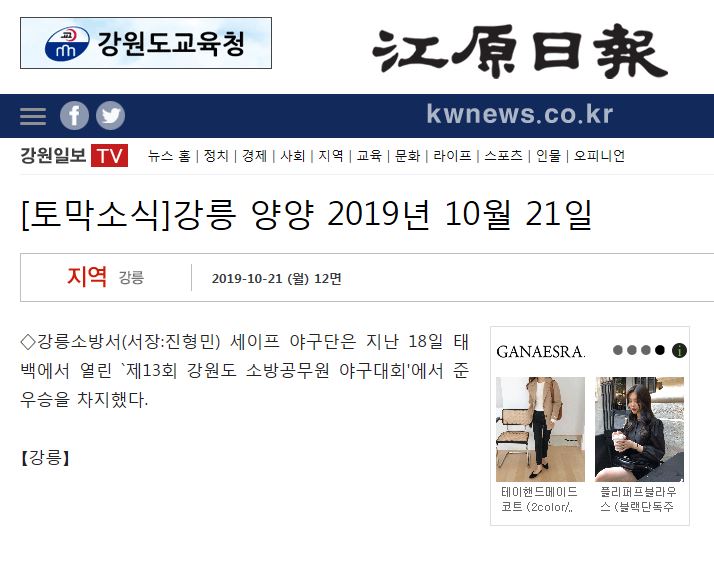 | 24241 | (강릉) 제13회 강원도 소방공무원 야구대회 준우승 | 강릉홍보 | 2019-10-21 | 376 | |