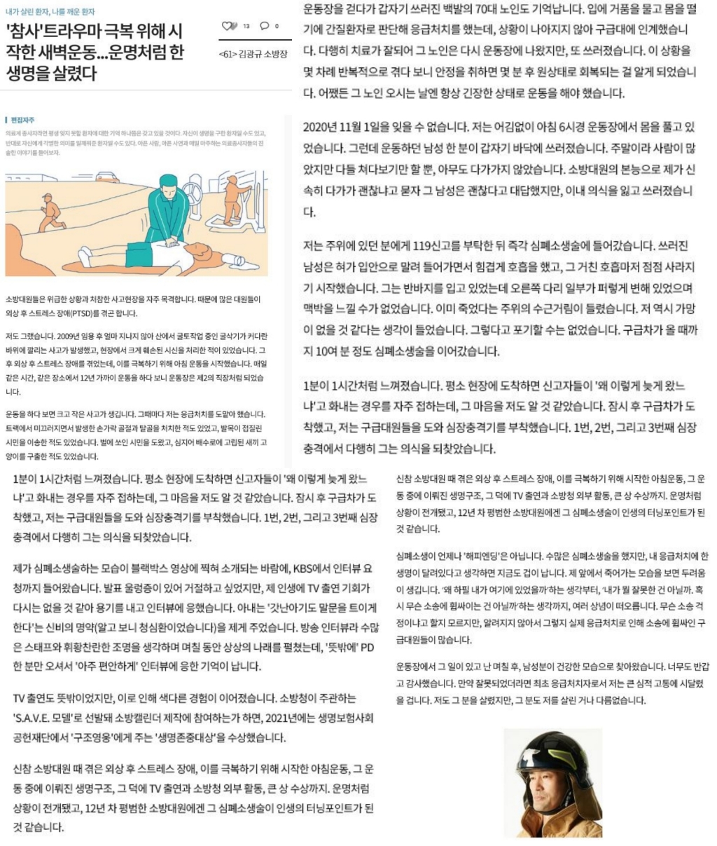 | 26568 | '참사' 트라우마 극복 위해 시작한 새벽운동...운명처럼 한 생명을 살렸다. | 태백홍보 | 2022-04-27 | 901 | |