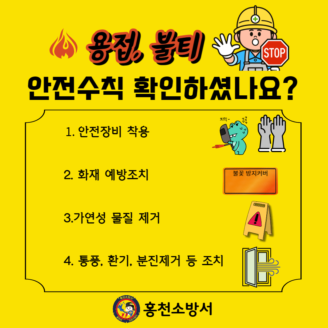| 26757 | 홍천소방서, 공사장 용접·불티로 인한 화재주의 당부 | 홍천소방서 홍보담당 | 2023-01-20 | 472 | |