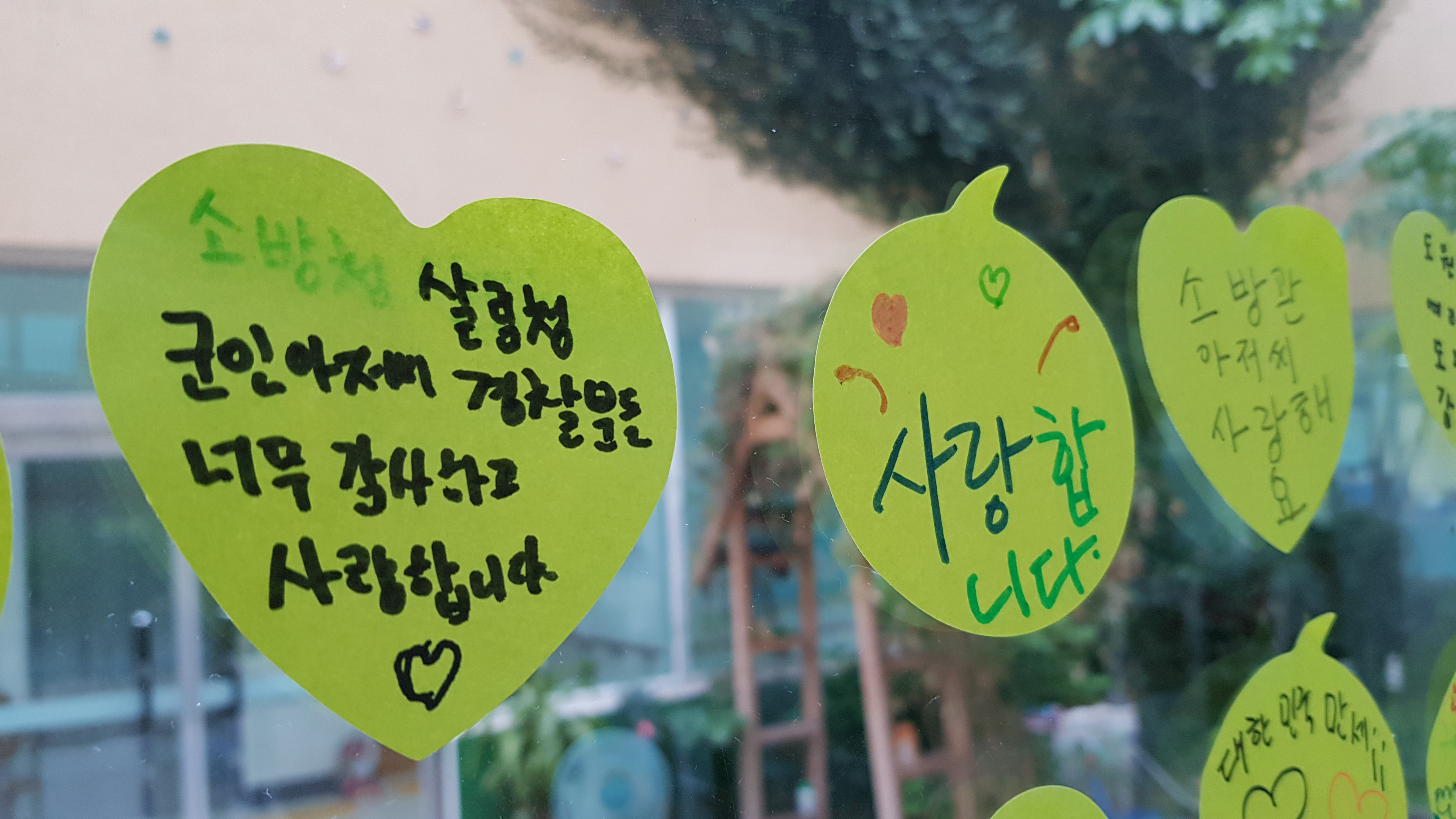 그날 저희들은 바람과 불과 소방 호수로 뒤엉켜 몸부림 치시는 소방관님들의 사투하시는 모습에 입밖으로 아모르뜰을 지켜주세요 라는 말을 할 수 없을 정도로 가슴 아픈 순간이었습니다.
