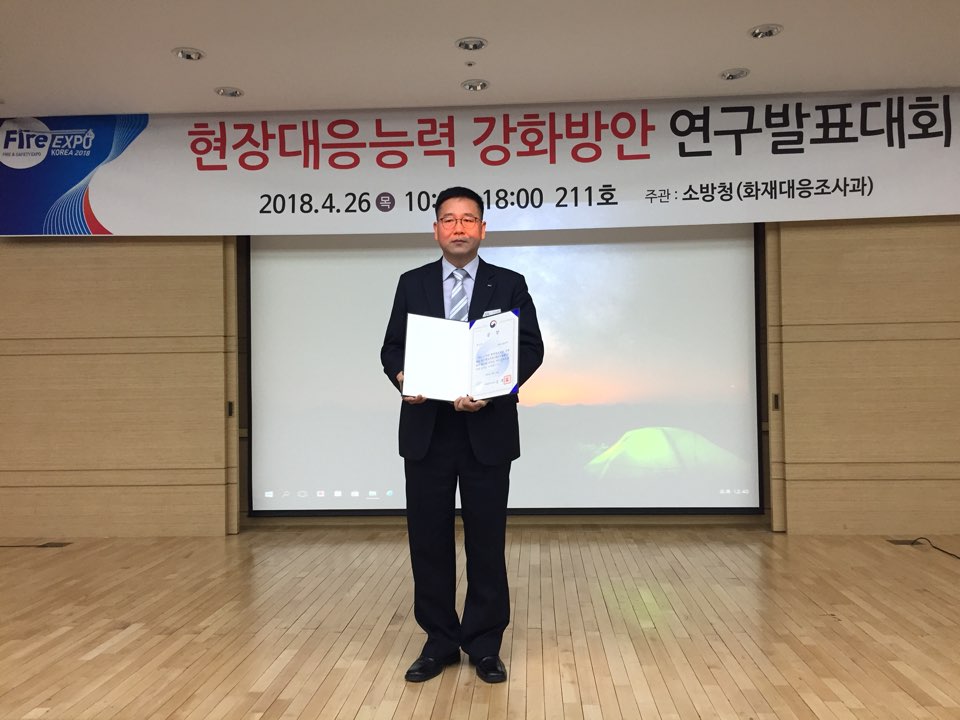 강원도소방본부(본부장 이흥교)는 26일 오전 10시 대구EXCO 211호에서 개최된 전국 현장대응역량 강화방안 연구발표대회에서 행정안전부장관상(전국 2위)을 수상했다.