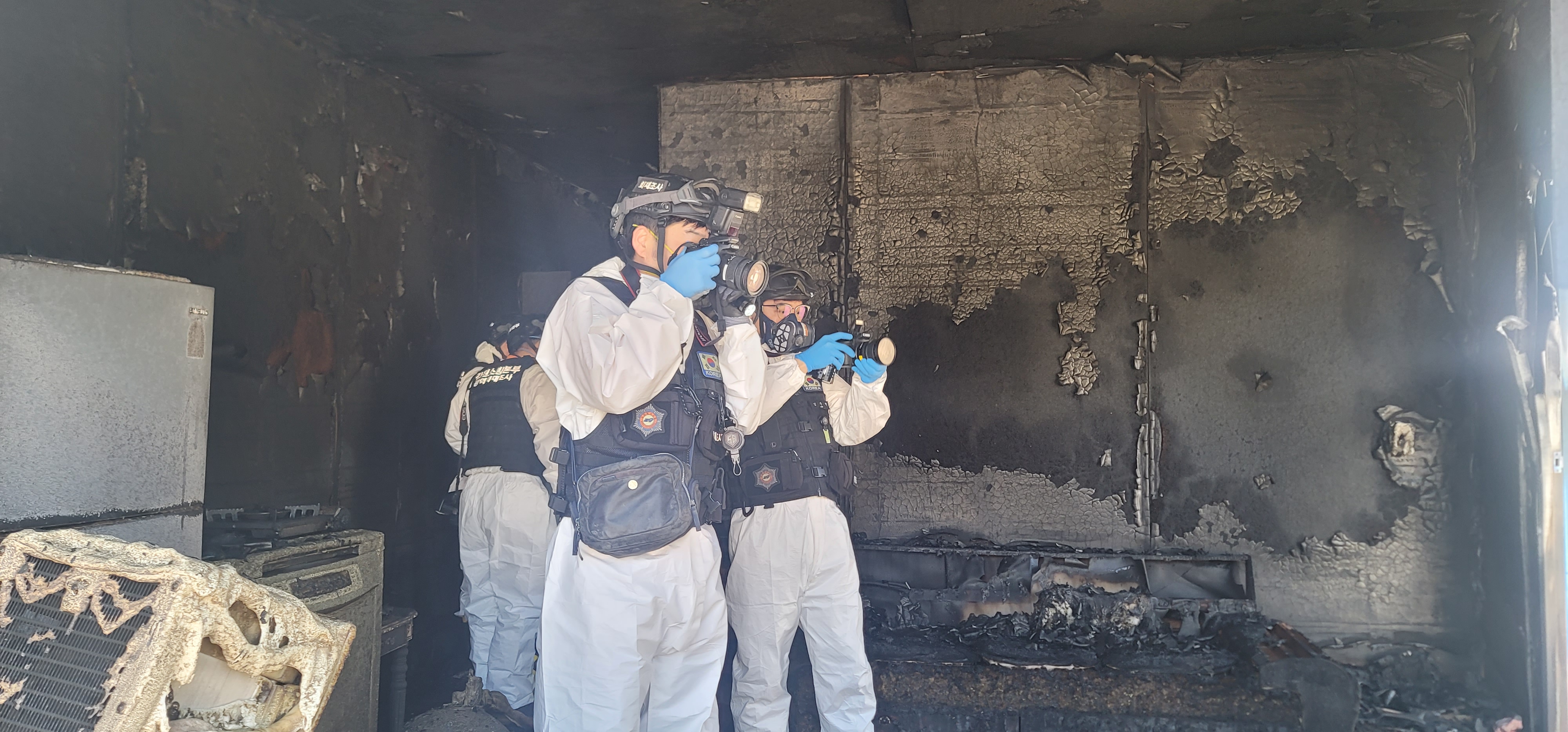 ○ 전기 멀티텝 트레킹현상을 통해 인위적으로 발생시킨 주택화재 현장에서 2명이 팀을 이뤄 그 원인을 정확히 찾아내는 것은 물론, 규명 과정에서의 증거물 분석과 입증 논리의 일관성, 결과에 대한 정확도 등을 평가했다.