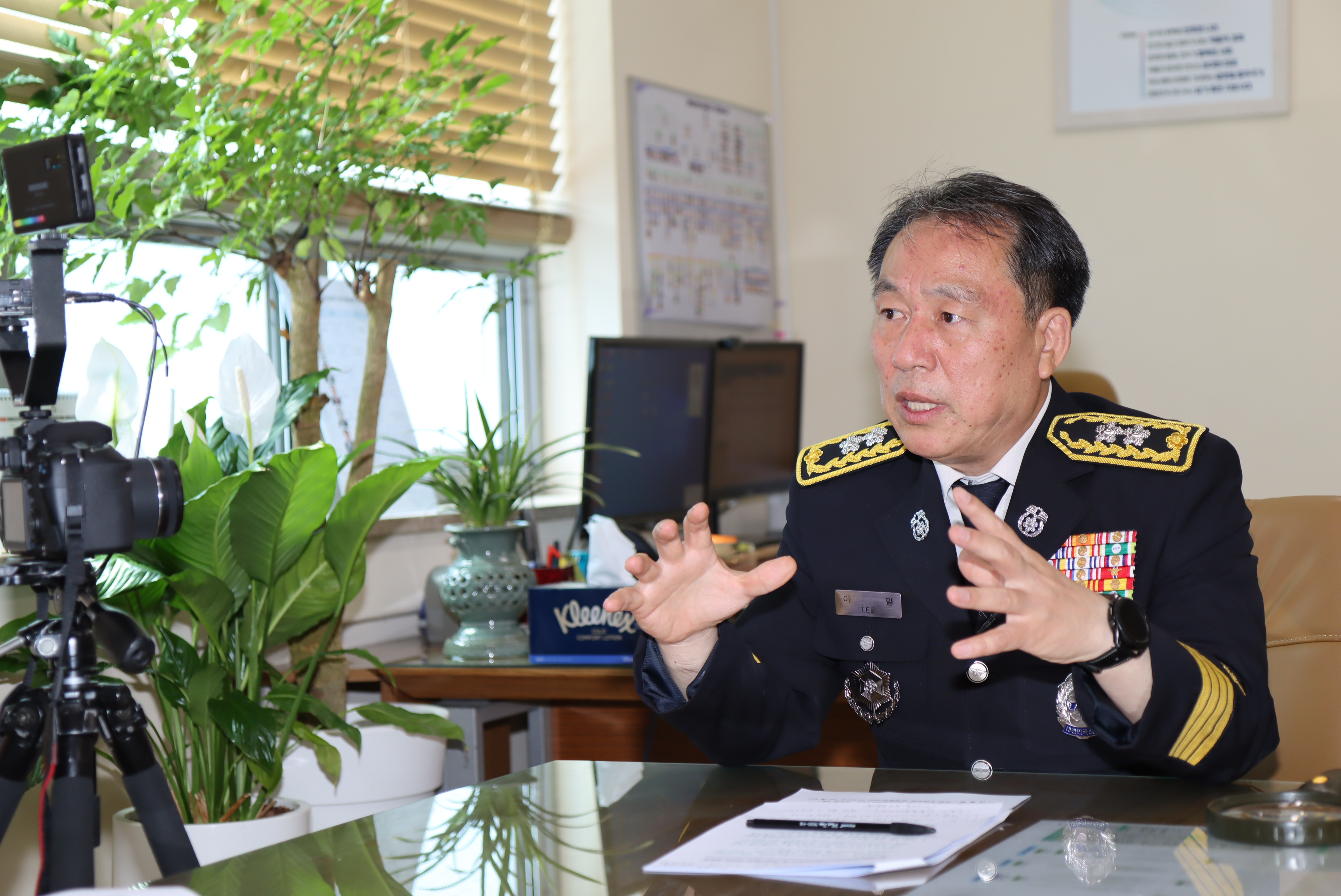 〇 이일 강원소방본부장은 금일 15시 본부장실에서 카자흐스탄 국영방송사 하바르24 특파원의 방문을 받고, 산림화재에 대한 강원소방의 다양한 진화기술과 여러 대응정책을 설명하는 시간을 가졌다.