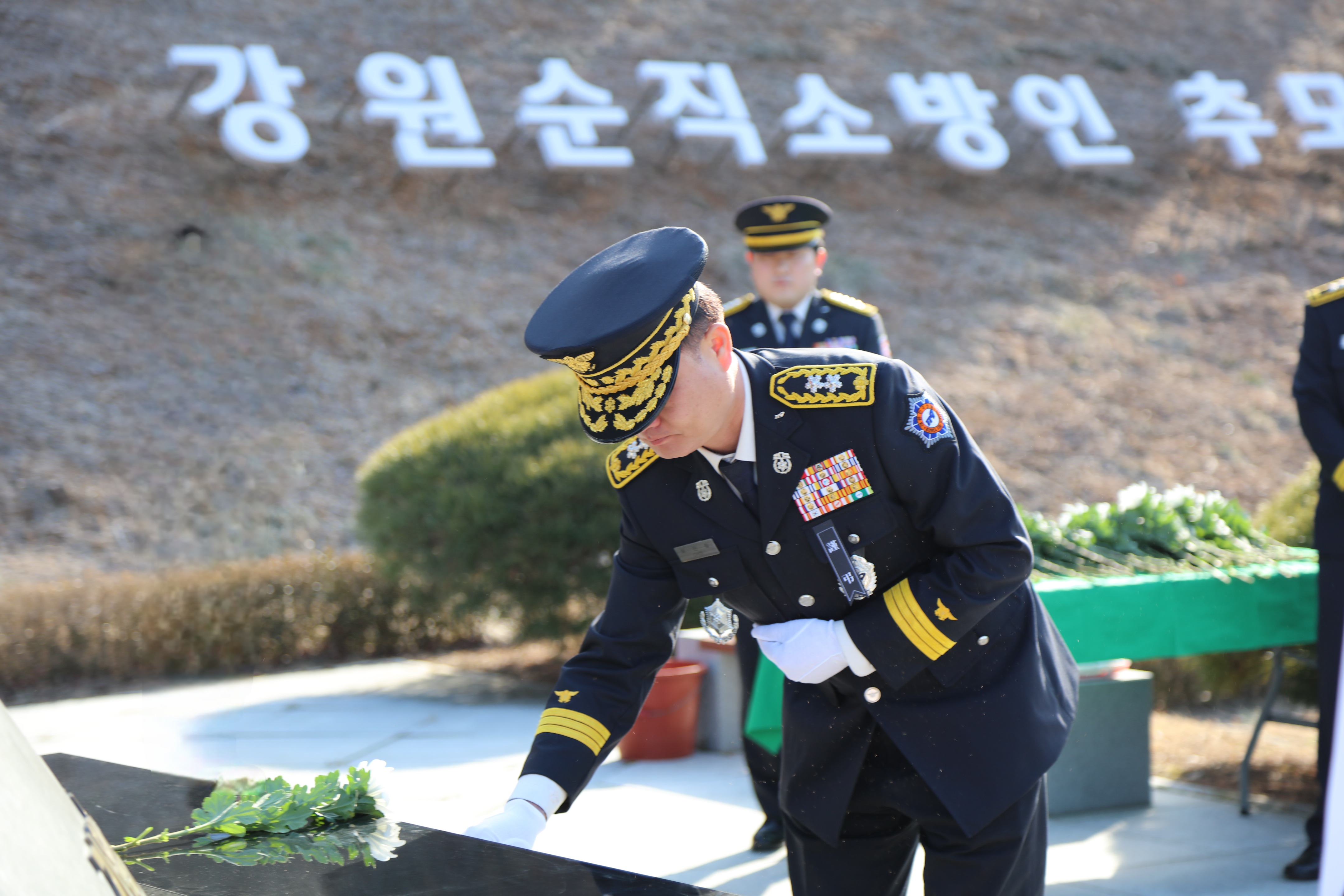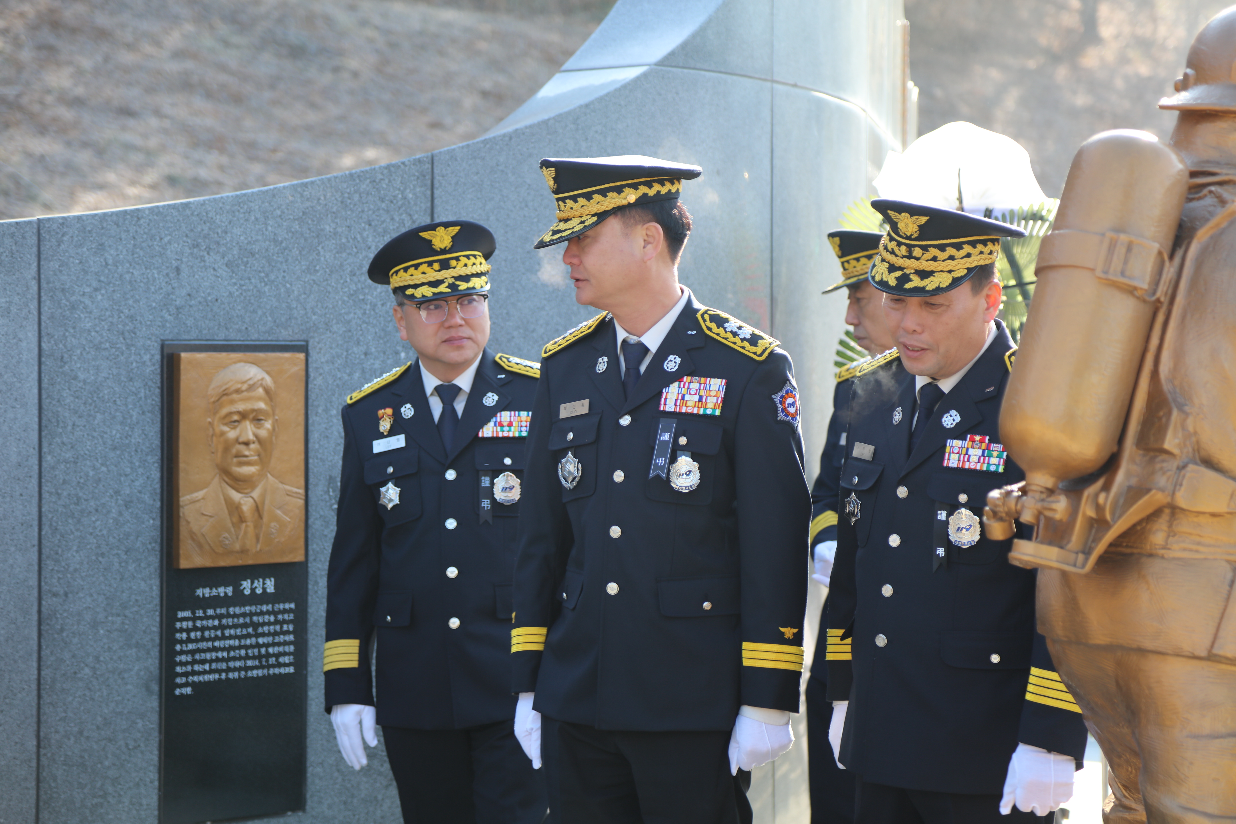 참석자들은 순직 소방공무원에 대한 헌화와 묵념을 통해 그들의 희생정신을 기리는
